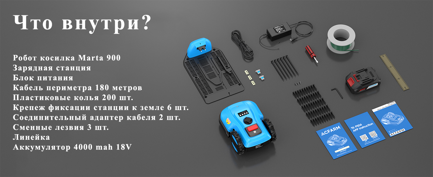 Главной проблемой недорогих проводных роботов газонокосилок является аккумулятор малой ёмкости, который приводит к тому, что робот начинает слишком часто возвращаться на зарядную станцию и буквально вытаптывать газон, образуя колеи, так как возврат происходит по одинаковой траектории по ограничительному проводу. В модели MARTA 900, установлен аккумулятор ёмкости 4000 mah, что позволяет роботу гораздо дольше работать на одном заряде и реже возвращаться на станцию, сохраняя ваш газон в идеальном состоянии. Аккумулятор MARTA 900 совместим с большинством типов электроинструмента, что позволит использовать его в холодный сезон и продлит долговечность, так как аккумулятор не будет находиться длительное время в разряженном состоянии.
