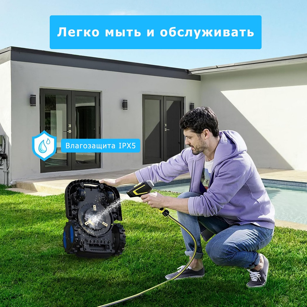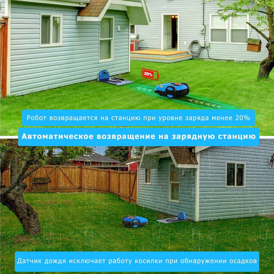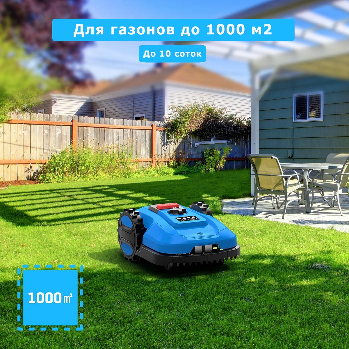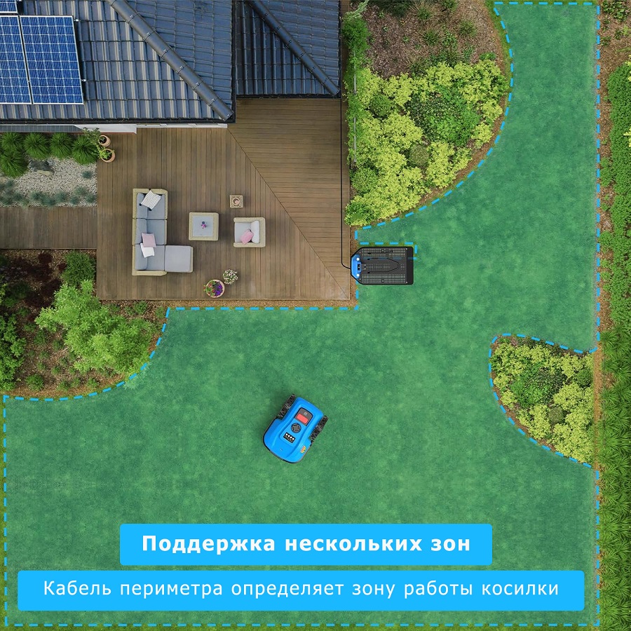 Ergomarine MARTA 900 – популярный недорогой робот газонокосилка, который рассчитан на газоны до 900 м2 (9 соток). Для начала его работы проложите поверх травы ограничительный кабель по периметру вашего участка (входит в комплектацию), за границы которого робот не сможет выезжать. Найдите место для установки зарядной станции и настройте режим время и дни кошения с помощью фирменного приложения. Благодаря ежедневной работе, робот делает минимальный срез травы (она не успевает сильно отрасти), который, во-первых, не нужно убирать, а во-вторых является питательным средством для газона, делая его сильным и устойчивым к сорнякам.